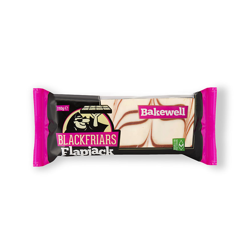 Almond flavour flapjack with a mixed fruit jam flavour filling and white chocolate flavour topping. Vegetarian friendly.
