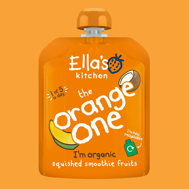 100% organic squished mangoes, coconut milk, apples + bananas with a dash of lemon juice. Just an organic smoothie fruit snack, with nothing else added, not even water. It contains 1 of the 5 lovely pieces of fruit and veg recommended a day.
