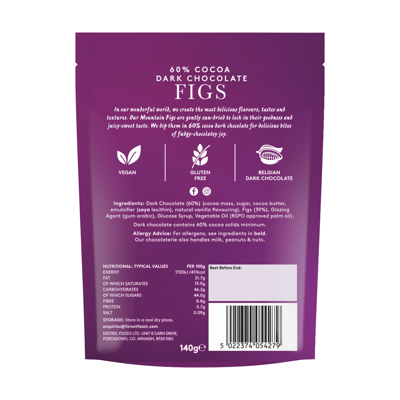 In our wonderful world, we create the most delicious flavours, tastes and textures. Our Mountain Figs are gently sun-dried to lock in their goodness and juicy-sweet taste. We dip them in 60% cocoa dark chocolate for delicious bites of fudgy-chocolatey joy.