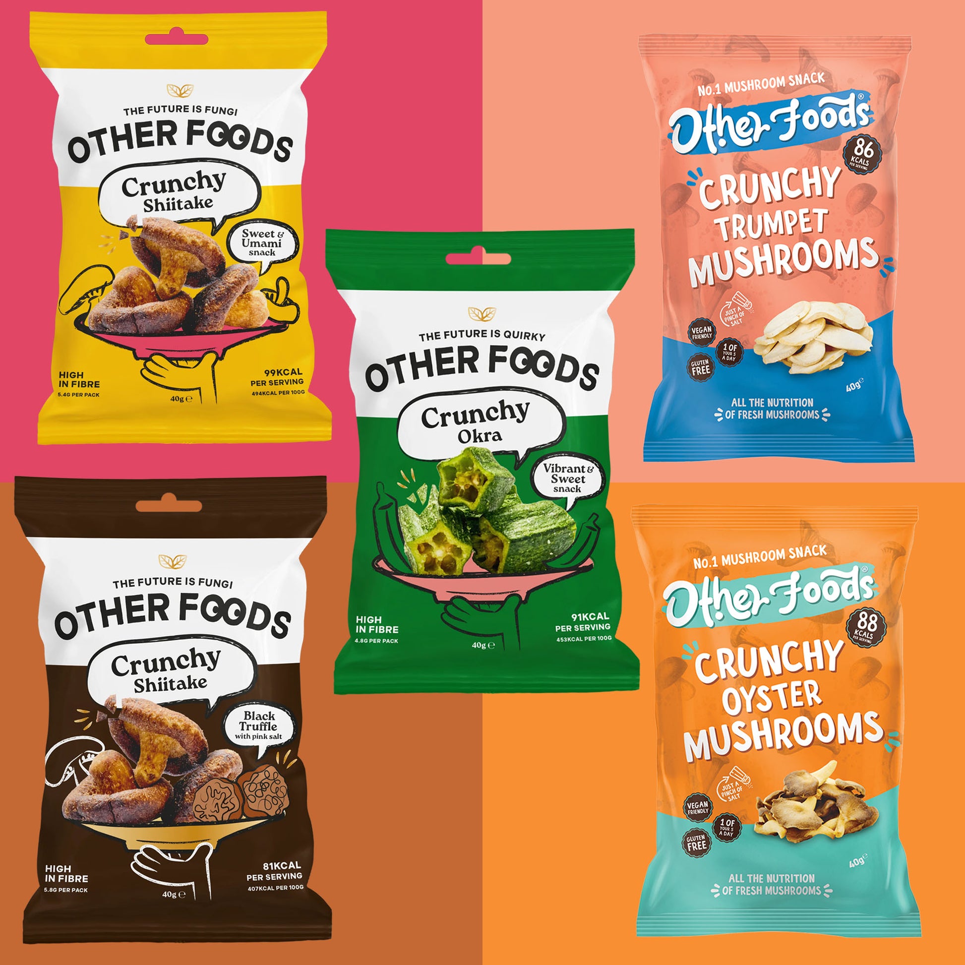 Other Foods' Mushroom snacks have all the taste and texture of natural slow baked mushrooms. The earthy Umami taste of mushrooms is one that few consumers can resist, combined with just a pinch of Himalayan salt to heighten the organaleptic experience.
