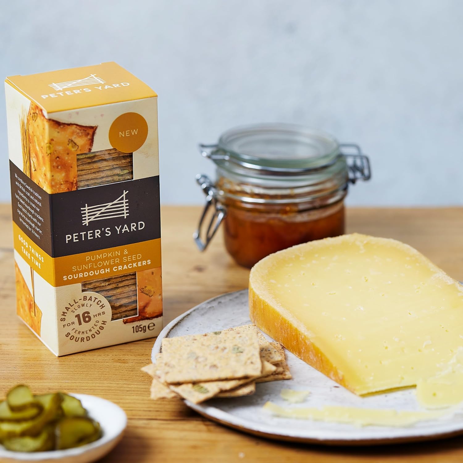 These sourdough crackers are made in small batches with our signature sourdough starter, which slowly ferments for 16 hours. They’re crafted from natural ingredients including Shipton Mill flour and organic fresh milk. Savour the crunch with a strong blue cheese.