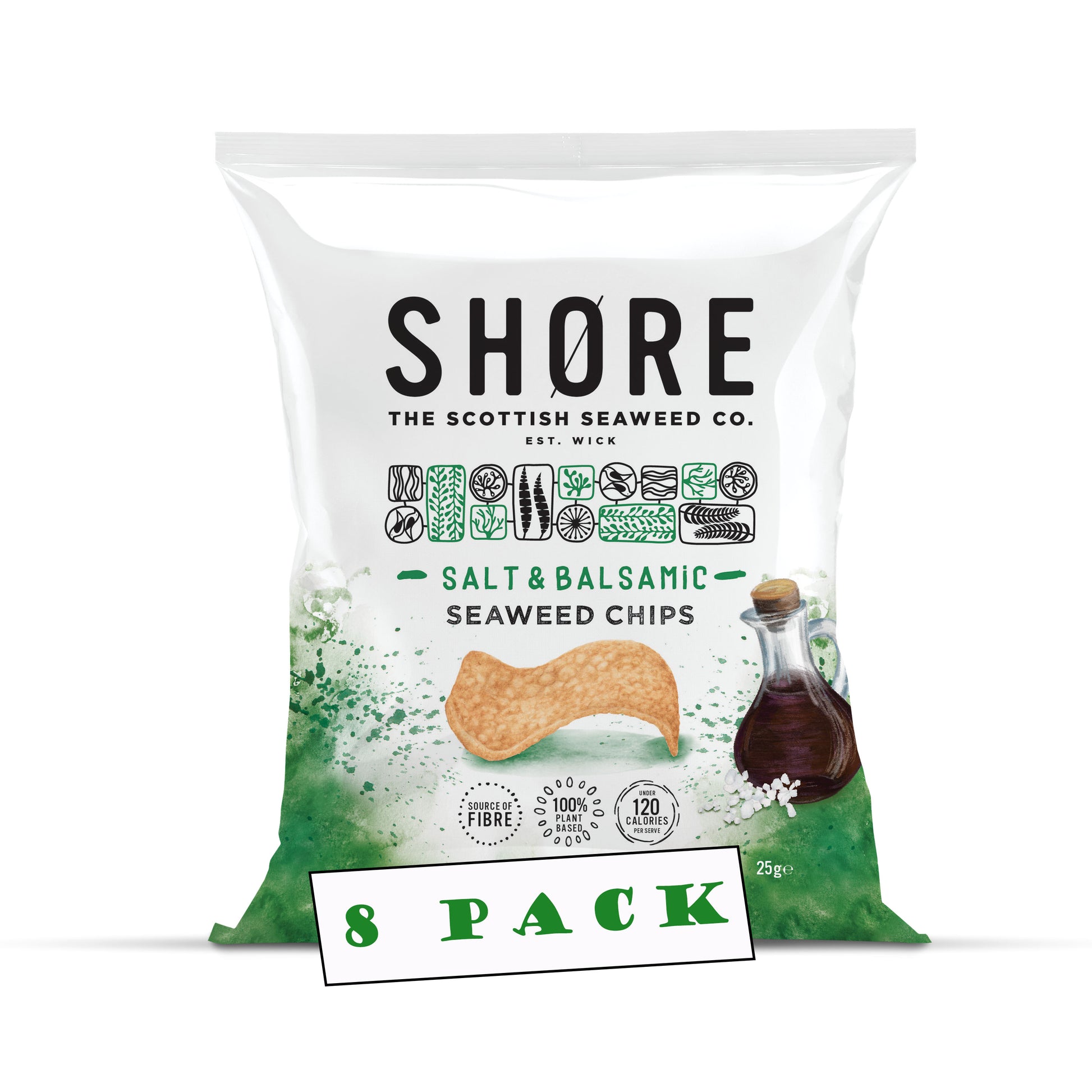 Shore Seaweed Chips - Salt & Balsamic 25g, Pack of 8